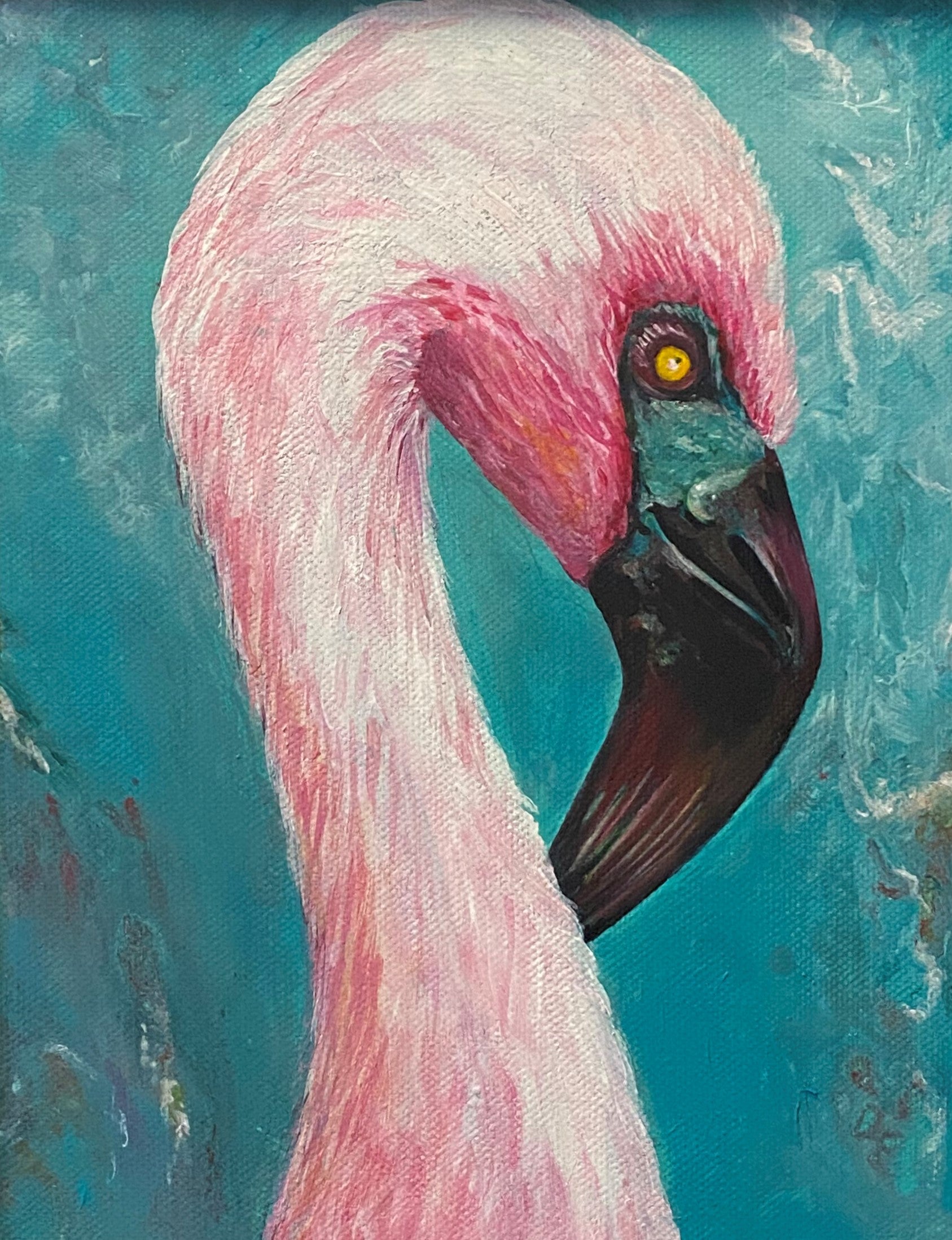 Original painting is 8" x 10" Acrylic on canvas with natural dark wood frame.