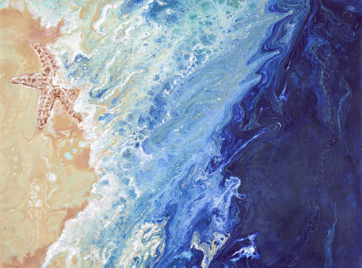 Original painting is 12" x 16" Acrylic on canvas in a white distressed frame.